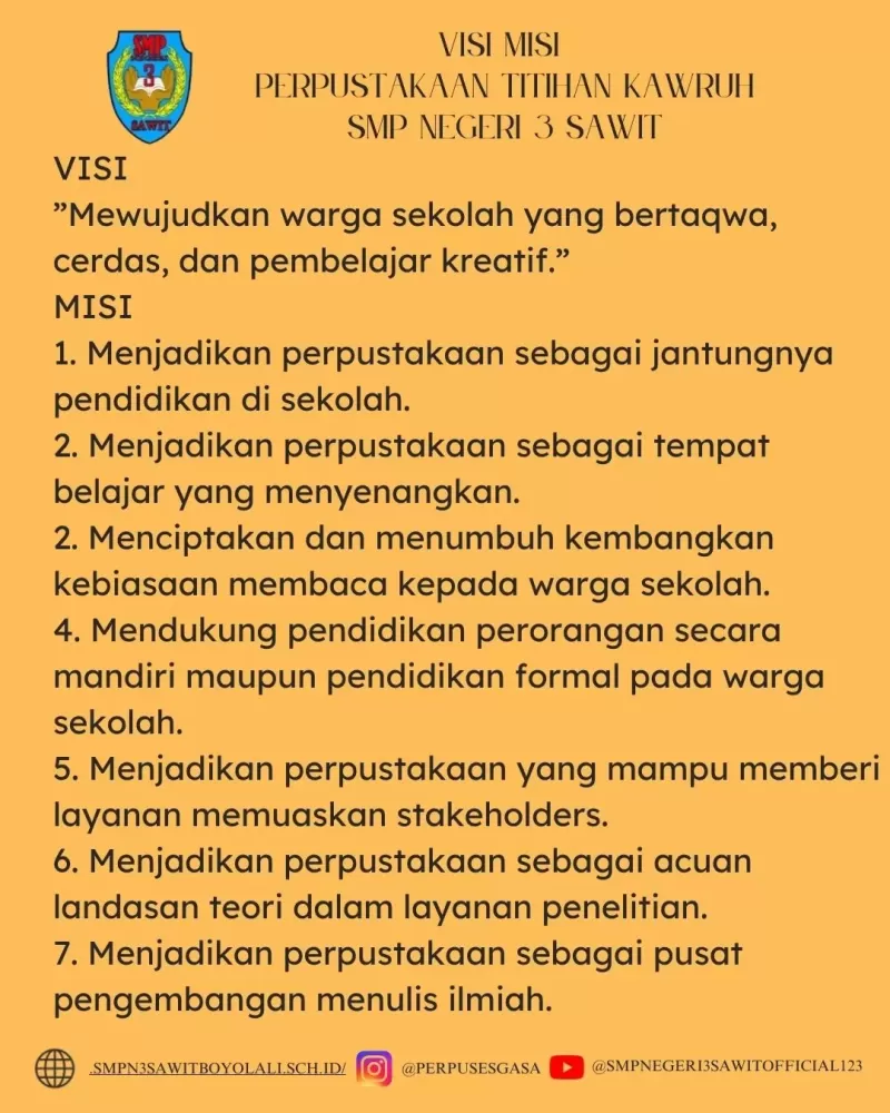 - Menjadikan perpustakaan sebagai jantungnya pendidikan disekolah.